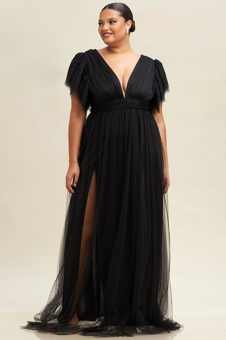 VESTIDO BRENDA NEGRO TUL ESCOTE EN V