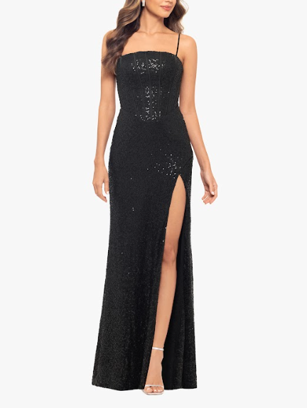 Vestido de noche Annie rosa fucsia tirantes y lentejuelas