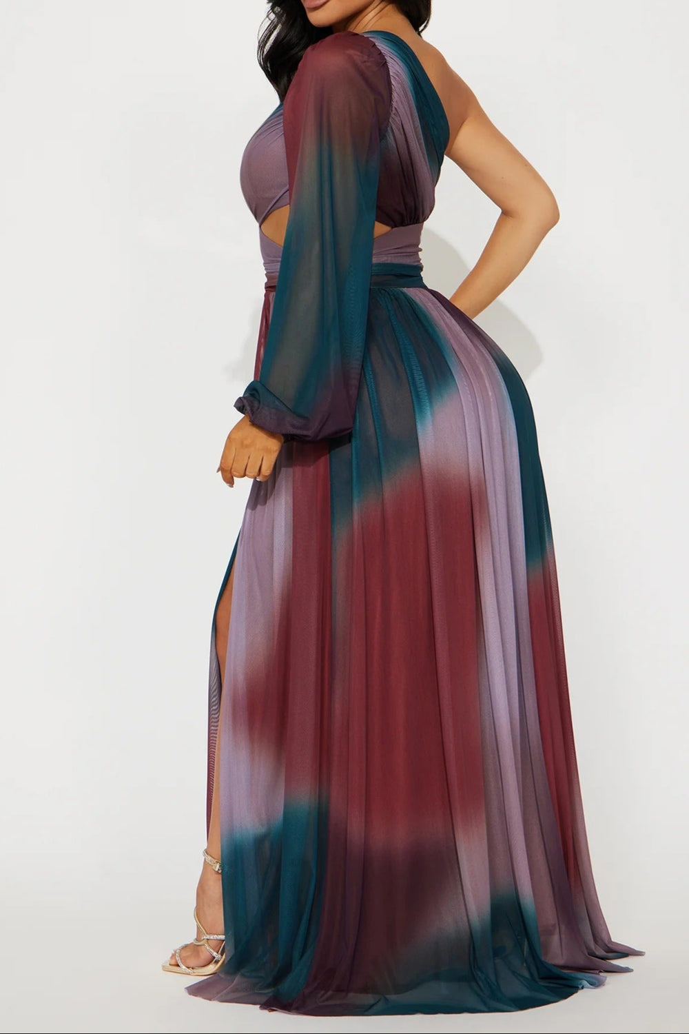 VESTIDO ECRIN MORADO ESTAMPADO UN HOMBRO