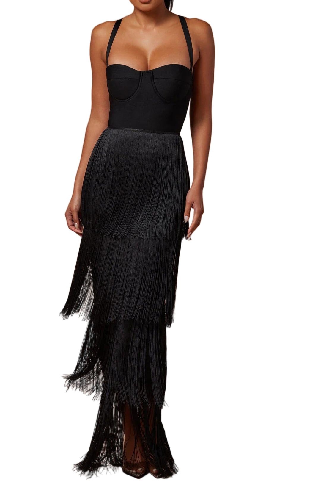 Vestido de noche jenne negro tirantes y lentejuelas