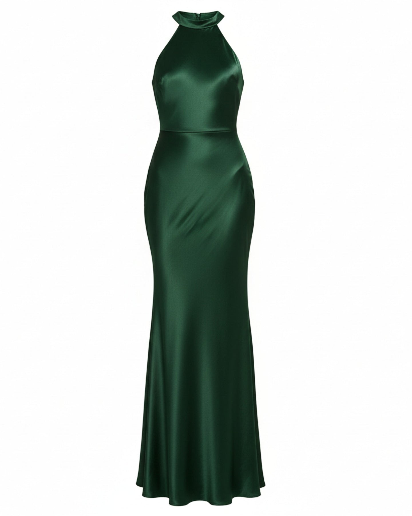 Deslumbra con este elegante vestido largo en tono verde esmeralda, diseñado para realzar la figura con una silueta sirena que abraza suavemente cada curva. Su cuello halter añade un toque moderno y sofisticado, creando un escote limpio y refinado ideal para eventos de alto nivel.